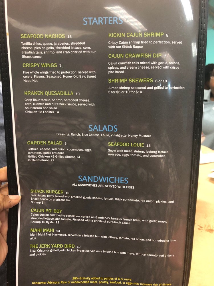 Flava Shack Seafood Menu